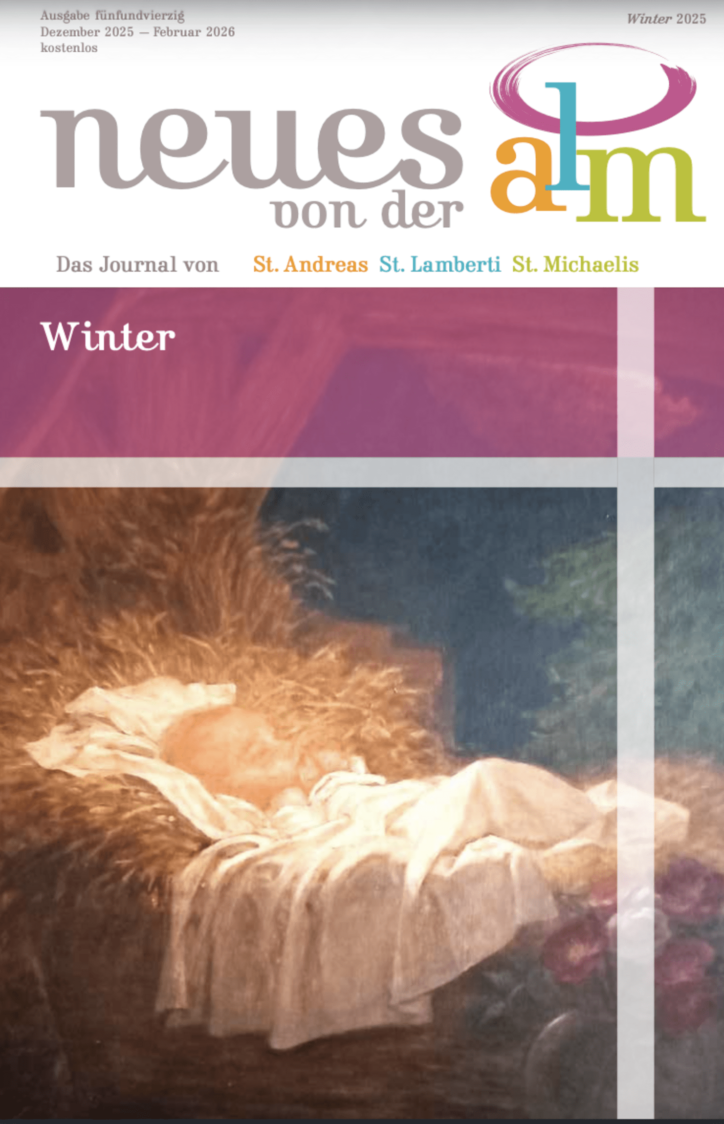 Im Rahmen einer Wandelandacht am heutigen Dreikönigstag, 6. Januar, sind daraus unter der Leitung von Andreaskantor Bernhard Römer Ausschnitte zu hören. Er hat acht Sängerinnen und Sänger seiner Kantorei und die Instrumentalistinnen Ulla Bundies, Eva Politt (Violine und Viola) sowie Cordula Cordes (Gambe) um sich geschart. An der Truhenorgel begleitet Guido Mürmann. Die Andacht beginnt um 18 Uhr am geöffneten Westportal der Kirche, führt in die geheizte Taufkapelle, wo die Aufführung stattfindet und Pastor Dr. Janis Berzins eine Ansprache hält, und endet an der im Chorumgang der Kirche aufgestellten Krippe mit dem Bach-Choral „Ich steh an deiner Krippen hier“ aus dem „Weihnachtsoratorium“. Der Eintritt ist frei.