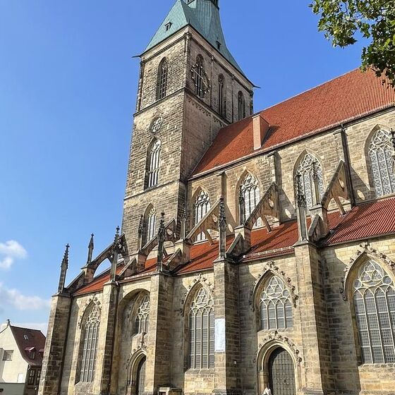 Im Jahre 1389 begann der Bau der Andreaskirche, der von der Bürgerschaft der Stadt in den jetzigen Maßen geplant war. Diese Bürgerkirche sollte durch Größe und Ausstattung vom Selbstbewusstsein, Stolz und Reichtum der Bürger künden. Ihr Standort im Bereich zweier wichtiger sich kreuzenden Handelswege war ein bedeutender Platz, wo sich im Mittelalter Handel, Handwerk, Schule, Krankenpflege und kirchliches Leben zusammenfügten.