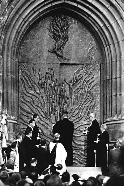 Sie erinnert an das Geschehen beim letzten Abendmahl, das Jesu mit seinen Jüngern feierte. Auch das Eingangsportal im Westen mit dem Durchzug des Volkes Gottes durch das Schilfmeer in das verheißene Land ist ein Werk Ulrich Henns. Die Wassermassen gleichen dem Flammenmeer von 22. März 1945, dem Untergang Hildesheims.